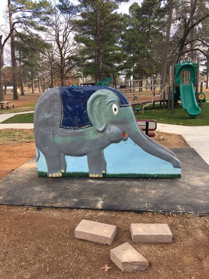 One of the achievements of the city of Hope this year is new playground equipment at North Side Park and Fair Park ; however, one of the best additions to Fair Park for some of us older folks is the newly renovated elephant slide. The elephant has been in the park for many years and was renovated and repainted by popular demand. The slide is now being used by some of the grandchildren of the original users.