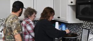 Club members set up shop in the kitchen at the First United Methodist Church with chicken, deer, beef and a combo chili made from sheep and pork. The chicken chili was the first to run out as more than 100 people called in for delivery. Club members were kept hopping making the deliveries. The meal also included a choice of red velvet cake, strawberry cake or chocolate cake, drink, crackers and cheese.