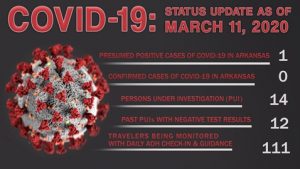 LITTLE ROCK – For convenience with social media posts today, I’ve attached a graphic with the latest numbers from ADH (3:30pm) and a graphic with the numbers of the call center. I’ve also provided several links below related to the coronavirus. The top three are taken directly from the ADH website. The bottom two are from the Governor’s website.