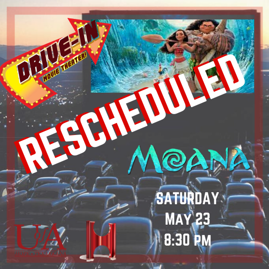 HOPE – The weather continues to cause changes with planned drive-in movies on the UA/Hope campus, sponsored by Hempstead Hall. Due to severe weather concerns tonight, MOANA has been moved to tomorrow night, May 23.