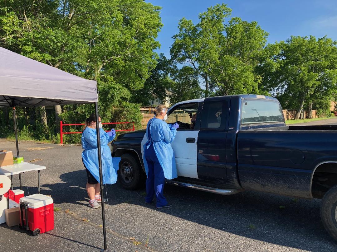 Bobcat Clinic Nurse Practitioner Kristin Price prepares to swab a patient during the COVID-19 mass testing offered for Hope Public Schools personnel June 4. Clinic Director Gretchen Carlton said 80 people participated in the testing with a less-invasive nasal swab. Carlton said participants will be notified of test results within a week. Testing is still available to HPS teachers, administrators, staff and their families by appointment at the Bobcat Clinic on the Hope High School campus. — KEN McLEMORE/Hope Public Schools