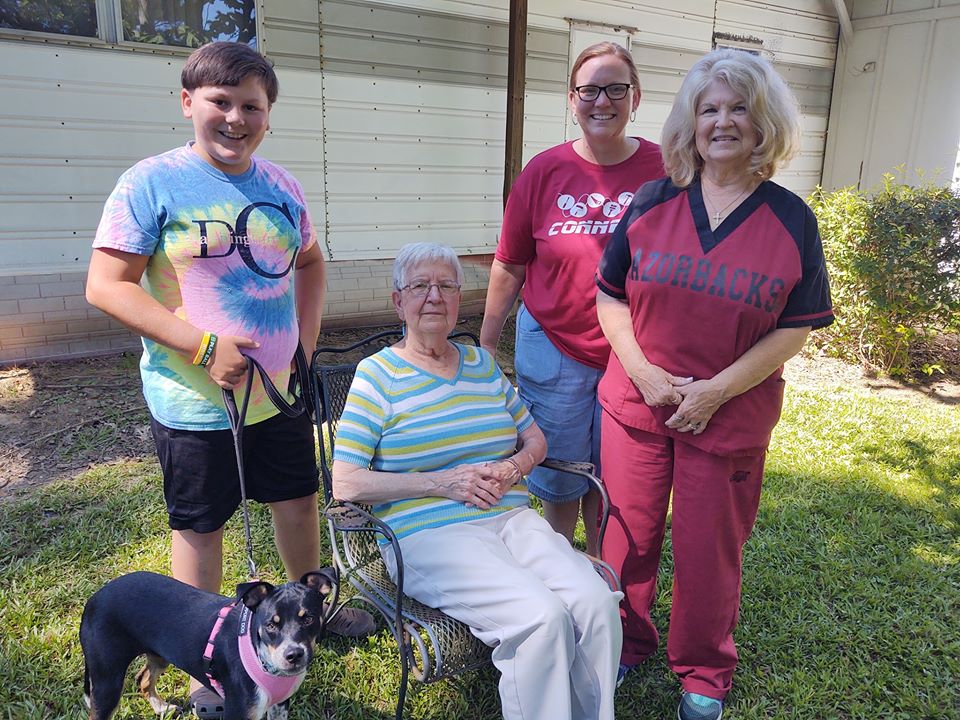 When we went out to get a picture, we got four generations at once with Mrs. Russell’s daughter, granddaughter, great grandson, and even a “granddog” thrown in for good measure! We wish the happiest of birthdays to a most delightful Hempstead County resident Mrs. Joyce Russell!