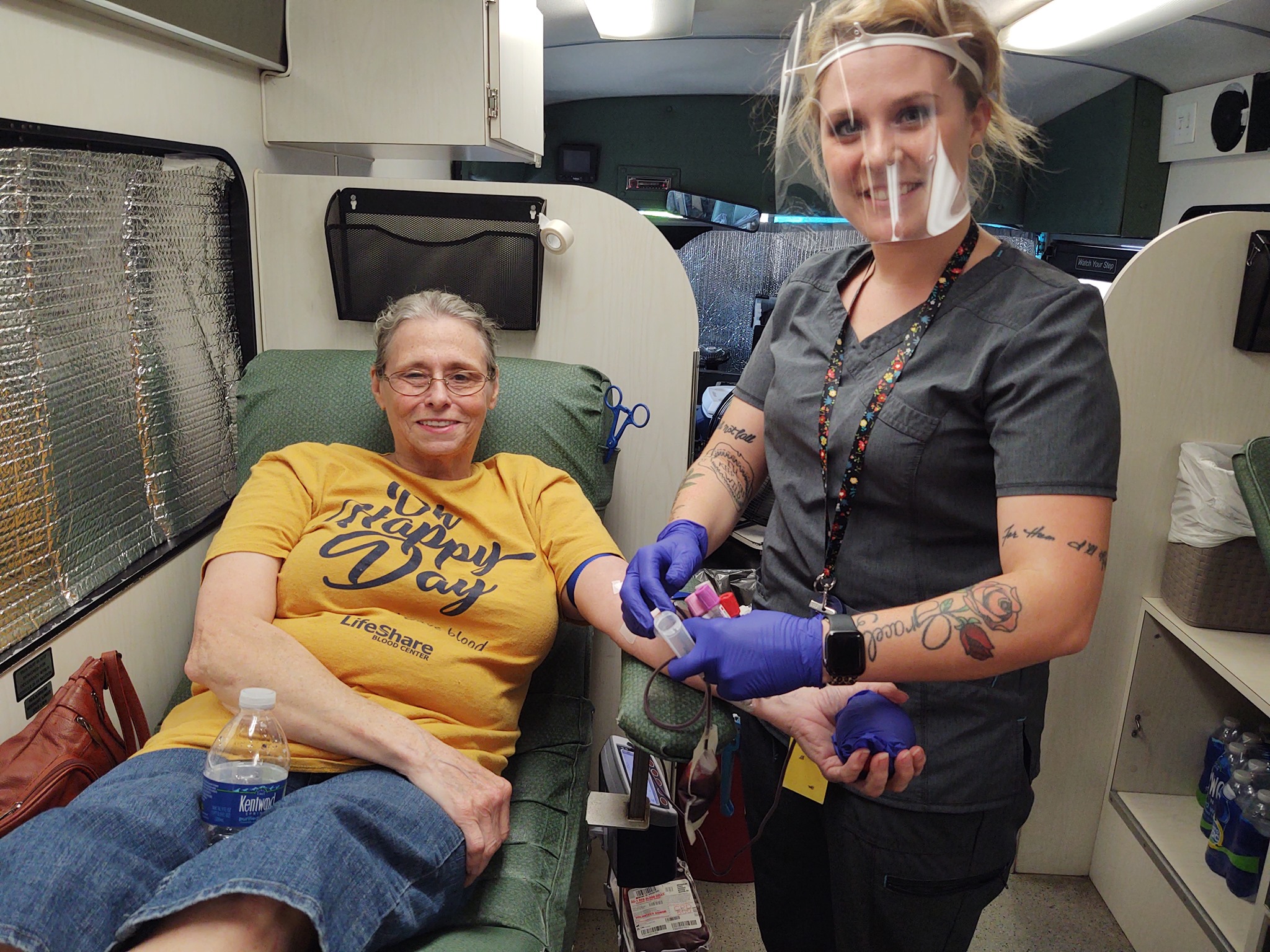 Phyllis Craig is shown giving blood Thursday at the annual “Hope Cuffs and Hoses” Life Share Blood Drive at Wal-Mart.  Craig, who lives in Delight, says she is a regular blood donor.  The blood drive was scheduled to continue until 6pm.  If you miss this opportunity to donate, there are several more coming up in Hope in early July.  The blood drives are as follows: