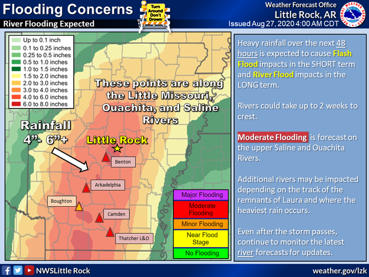 Featured Nevada County News News Flood Concerns With Laura (Updated) National Weather Service-Little Rock August 26, 2020