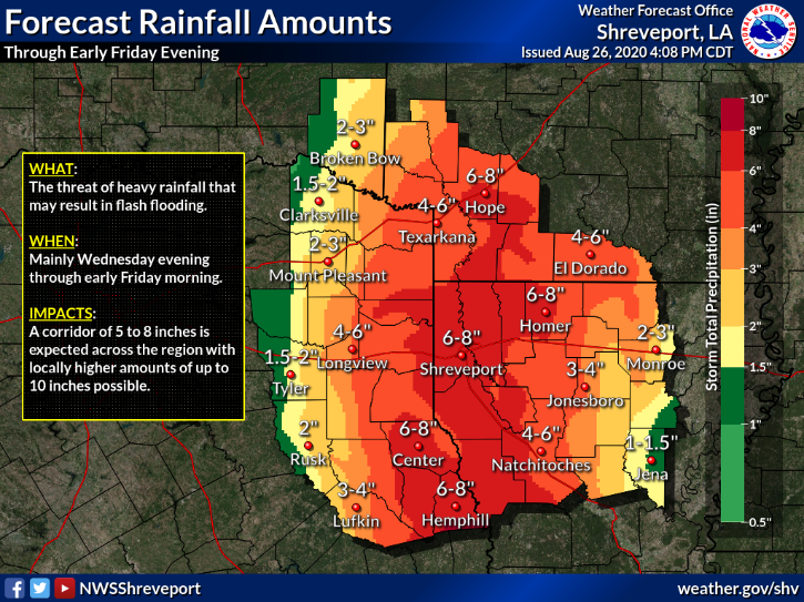 Featured Hempstead County News Nevada County News News Flash Flood Watch & Forecast Rain Amounts National Weather Service-Shreveport August 27, 2020