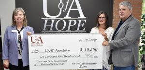 HOPE – Steve and Celia Montgomery, of Hope, Arkansas, recently established the Steve and Celia Montgomery Endowed Scholarship at the University of Arkansas Hope-Texarkana. Steve Montgomery said he and his wife wanted to find a way to help support the college this year since they were unable to do so by sponsoring the Watermelon Festival Concert as they usually do. “We have been a part of the Hope community for over thirty years and have always enjoyed giving back when we are able,” he said.