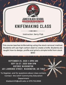 WASHINGTON – A knifemaking class will be held Sept. 25-27 at Old Washington Historic State Park.