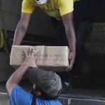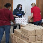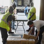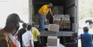PRESCOTT – About  24 volunteers showed up to box two truckloads of food to be  distributed Wednesday morning.