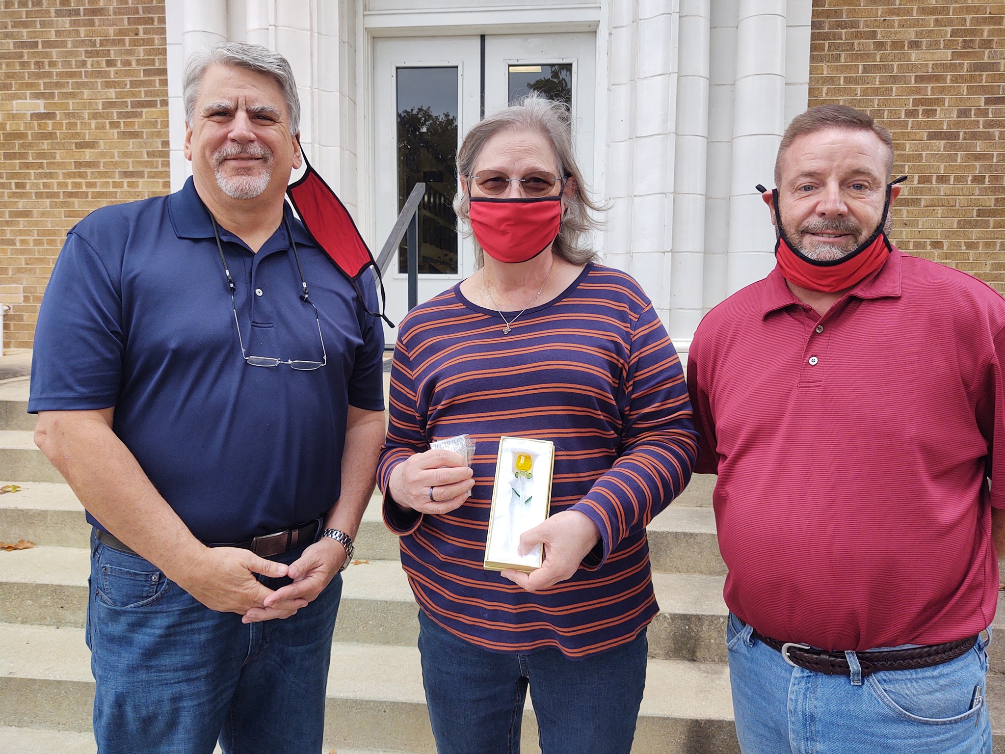 Hope Lions President Mark Ross and Lion Steve Montgomery visited Catherine Cook last week to bestow Lions honors in memory of her late husband. Jeff Cook was honored for bringing new members to the club and Catherine was also honored with a crystal rose from the Lions in his memory. Jeff Cook was a past president of the Hope Lions and also had served as President of the Arkadelphia Lions. He was a dedicated Lion for many years and is missed by all.