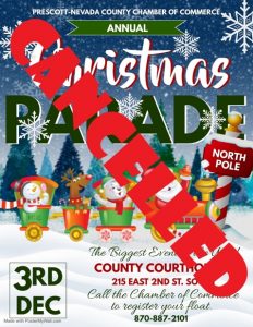 PRESCOTT – After many conversations with local churches, civic clubs, organization and other community individuals the Prescott-Nevada County Chamber of Commerce has made the decision to cancel the 2020 Christmas Parade.