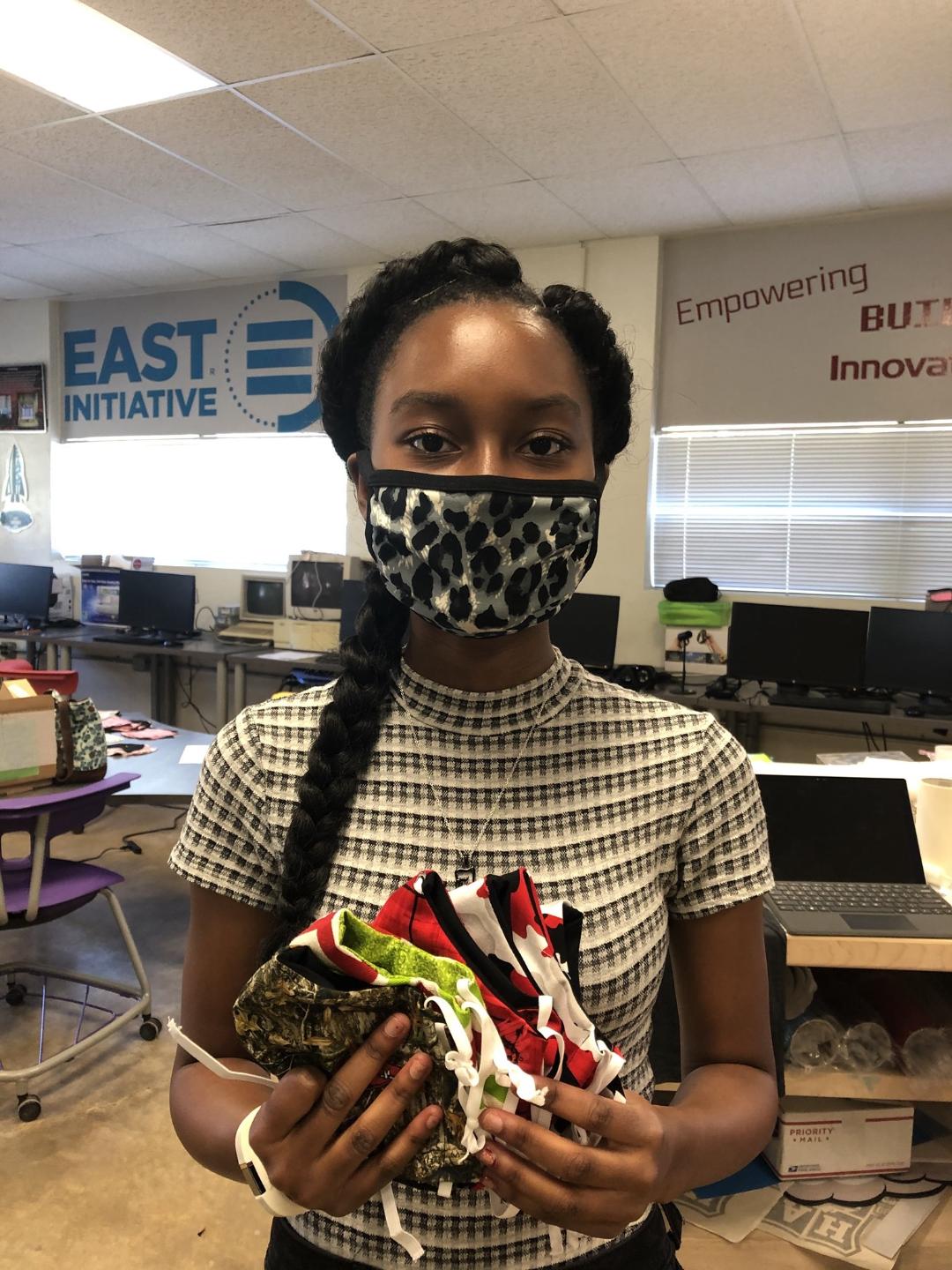 Clinton Primary School teacher Eddra Phillips and Hope High School teacher Michele Lloyd, along with volunteer Marlon Ward, have provided sewing machine support and supplies, and CPS teacher Kayla Bowden has donated material, Brady said.