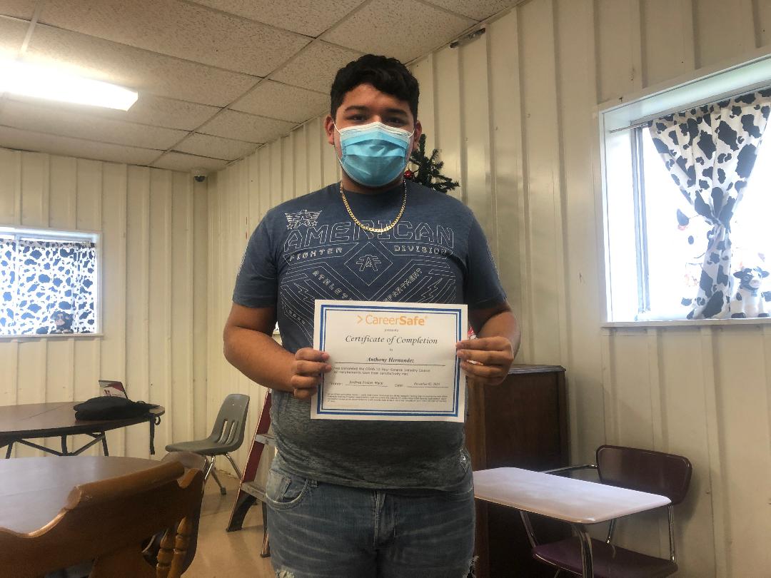 Hope High School agriculture student Anthony Hernandez has been awarded certification in the Occupational Safety and Health Administration Outreach Training Program at HHS. Hernandez is the first HHS student to acquire the certification. The certification is offered in agricultural metals, mechanics and structures classes through a 10-hour course designed for entry-level employees in construction and general industry, according to HHS Agricultural Sciences Teacher Christina Smith. – Ken McLemore/Hope Public Schools