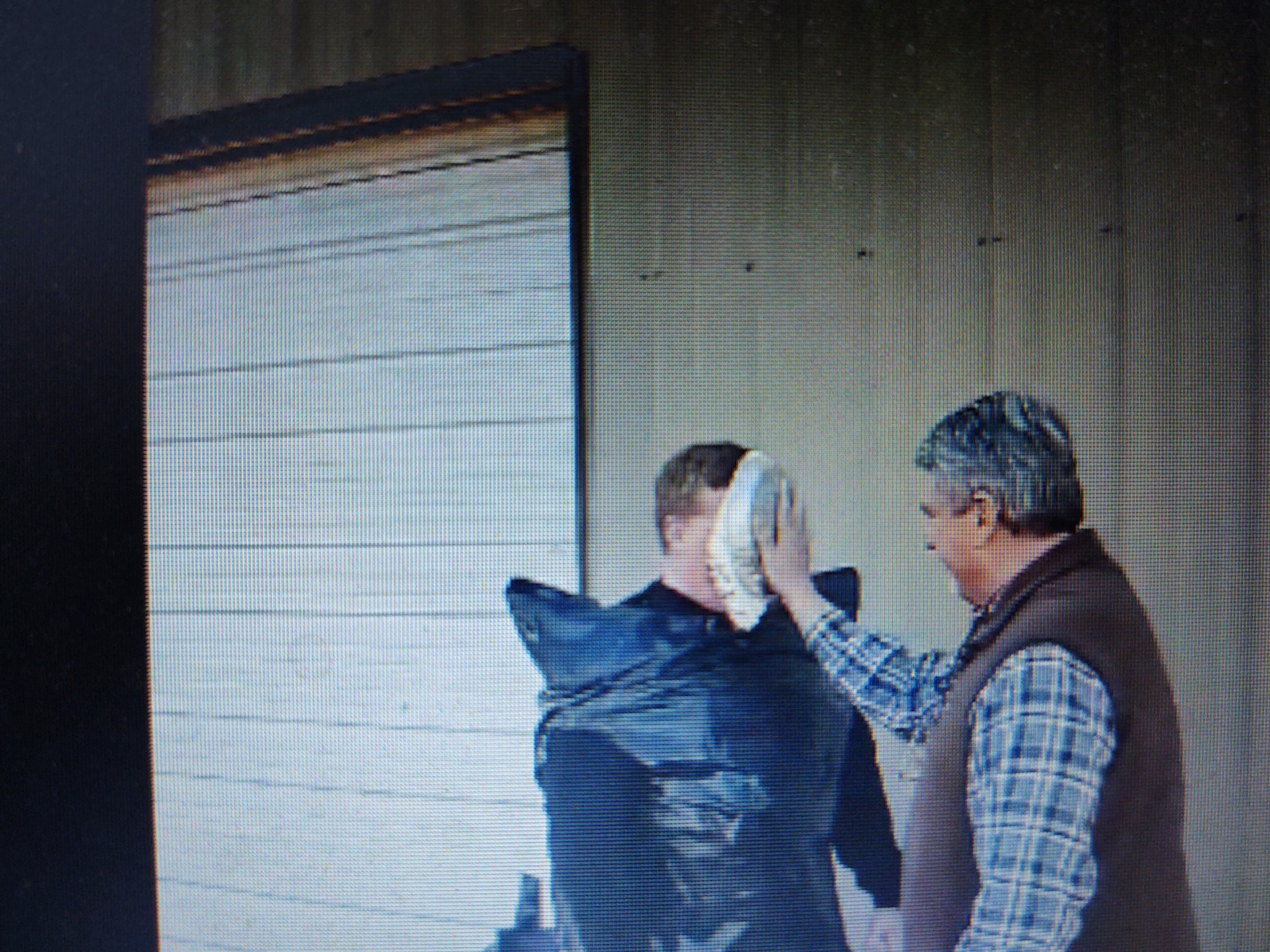 The Hope Police Department has been having a “friendly” competition to see who can raise the most to benefit the department’s “Santa Cop” program.  Two officers were scheduled to get pied although two others volunteered.  The original plan for the competition was for Chief Wilson, Lt. Courtney, Sgt. Oller, Cpl. Jones, and Cpl. Dean.  The top two officers people paid to see pied were Cpl. Justin Dean and Lt. Jimmy Courtney.   Lt. Courtney raised $1,841 for Santa Cop.   Mayor Steve Montgomery did the honors.  Hunter Halladay stood in for Sgt. Oller and did not get pied.  Cp. Jones and Chief Wilson “volunteered” to get pied and were good sports to do so.  The whole episode was played out via facebook live.