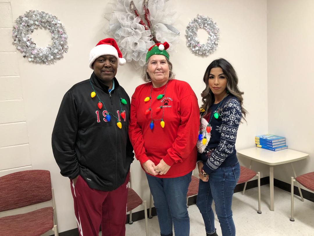 Beryl Henry Elementary School Principal Dr. Roy Turner and administrative assistants Linda Rowe and Gabriella Coy lit up the holiday spirit at BHE as the first semester of the 2020-2021 school year came to a close Friday. Students will return and classes will resume in the Hope Public Schools after the annual Christmas break on Jan. 4. – Ken McLemore/Hope Public Schools