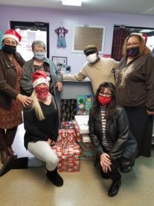 The Hope Civitan Club again provided Christmas gifts this year for children in families being served by the local office of Domestic Violence Prevention.  Pictured at the presentation of the gifts in the DVP thrift store are (front, from left) Mandy Turner, DVP local director, and Civitan Terra Newsome; (back row, from left) Betty Valdez of DVP, Civitan Club President Eva Morehead, Civitan Allen Flowers and Jessica Chavez of DVP.   Gifts were provided for three children, ages 2, 12 and 15.  The Christmas gifts were purchased and wrapped by members of the Civitan Club, using funds provided to the club by generous community donors as well as Civitan Club members.