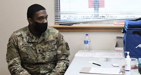 Sgt. Dell Hall, with Charlie Co. of the 39th BSB, said the four of them are the vaccination strike force for the southwest region. The other three guardsmen are: Jakaal McNeely, Xachariah Hansen and Austin Hudson. The quartet brought 800 doses of the Johnson and Johnson variety of the vaccine to be given to the public. This is the one-and-done vaccine as only one dose is needed.