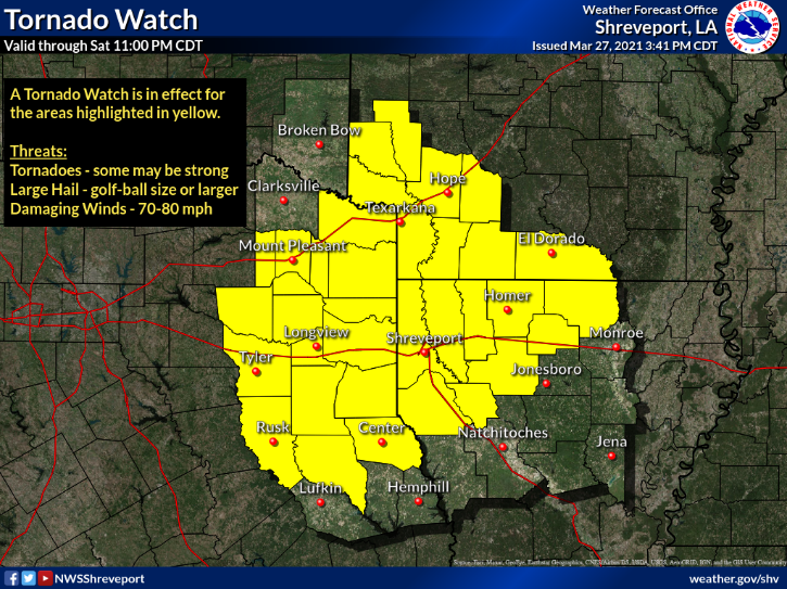 Featured Hempstead County News Nevada County News News Weather Bulletin-Tornado Watch Storm Prediction Center, Norman, Oklahoma March 27, 2021