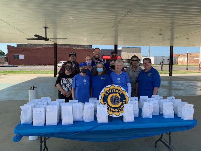 Members of the Hope Civitan Club stand ready to hand out bags of pre-wrapped treats as they hosted a Chamber of Commerce Business After Hours at the Hub in downtown Hope Tuesday, April 13, from 4:30 to 6 p.m..  The drive-by event was the club’s annual celebration of April as Civitan Awareness Month.  Civitan International is a service organization whose motto is “Builders of Good Citizenship.”  The Hope Club, which chartered in December 2009 and is now 11 years old, completes a number of community projects each year, including sponsorship of the Watermelon Festival Car Show.  Civitan International has a special focus on individuals with intellectual or developmental disabilities and the local club also supports the Civitan International Research Center in Birmingham, Alabama, where research is conducted into the causes of disabilities.  Civitans pictured are (from left) Andrea Martin, Jeramy Fielding, Patti Manus, Debbie Hall, Aaron Black, Mona Still, Twyla Pruden, Jerry Pruden, Linda Blackmon, Beckie Moore and club President Eva Morehead.  Not pictured is President-Elect Amber Mackey, who took the picture.