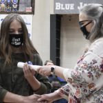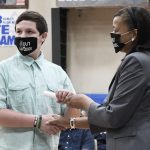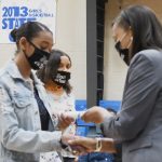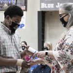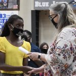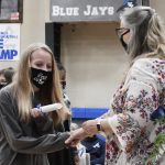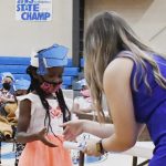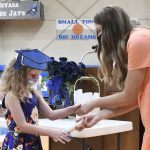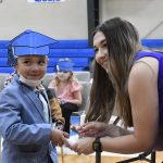 The commencement exercises were held in the gym, with families gathered for the occasion. All of the students received a “diploma” and lined up on front of helium-filled 2021 balloons to get their photos taken by relatives. Sandra Browning said the students all worked hard to achieve this. As a special treat, the kindergarten students performed “Can’t Stop that Feeling”.