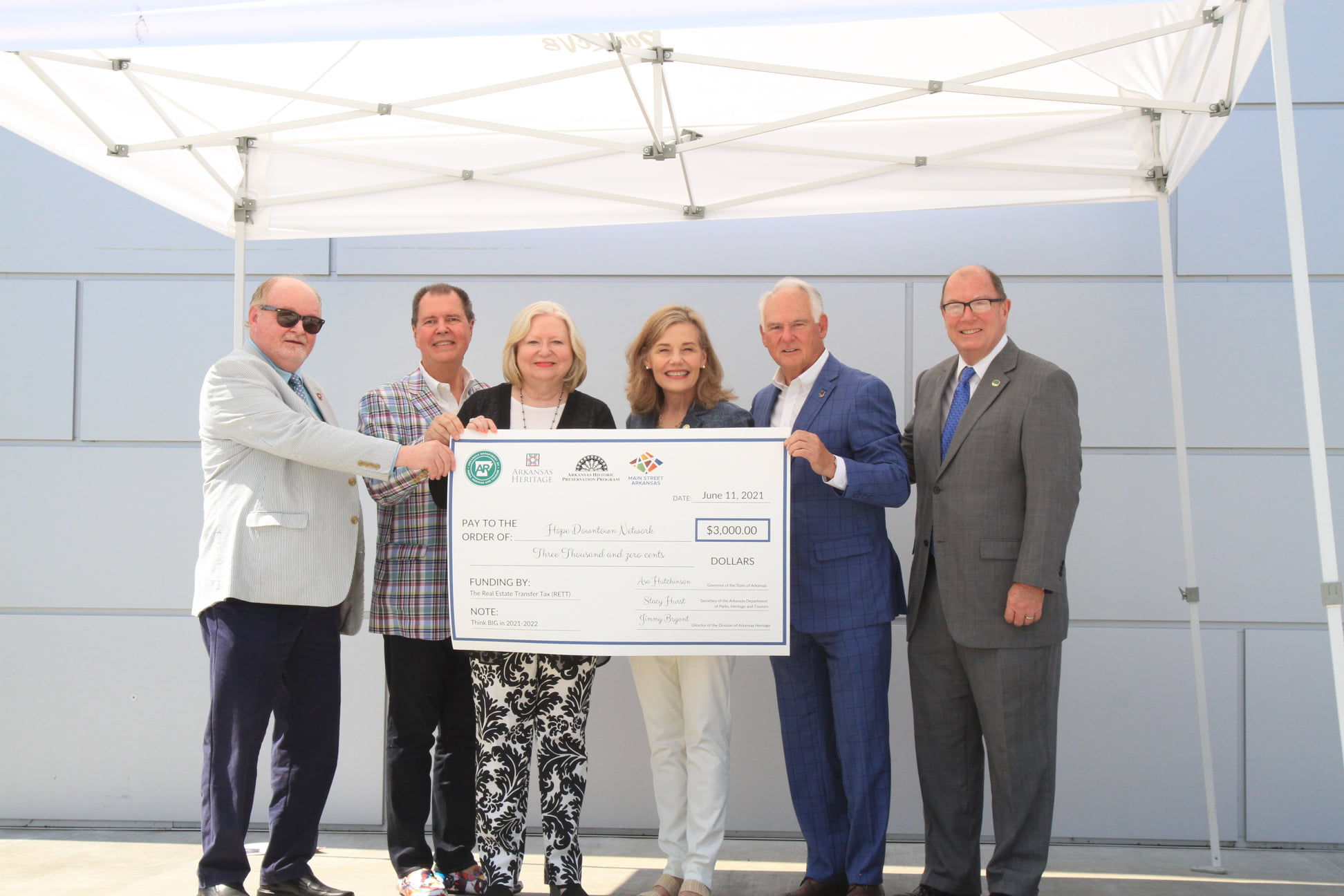 LITTLE ROCK – Friday, the Main Street Arkansas program said it “had a chance to celebrate our Main Street programs and present them with their ceremonial “big check.” These checks allow our programs money to do good things in their communities and this year, Sec. Hurst is encouraging the communities to THINK BIG! We were welcomed on this beautiful but steamy summer day to the Argenta Plaza for an outdoor event. Speakers included: North Little Rock Mayor Terry Hartwick, Pulaski County Judge Barry Hyde, Arkansas Heritage Director Jimmy Bryant, Arkansas Department of Parks, Heritage and Tourism Secretary Stacy Hurst, as well as Argenta Downtown Council’s Chris Kent. Nearly all of our Main Street and Downtown Network programs attended today. Members of the press are welcome to request photos by emailing mandy.shoptaw@arkansas.gov.”
