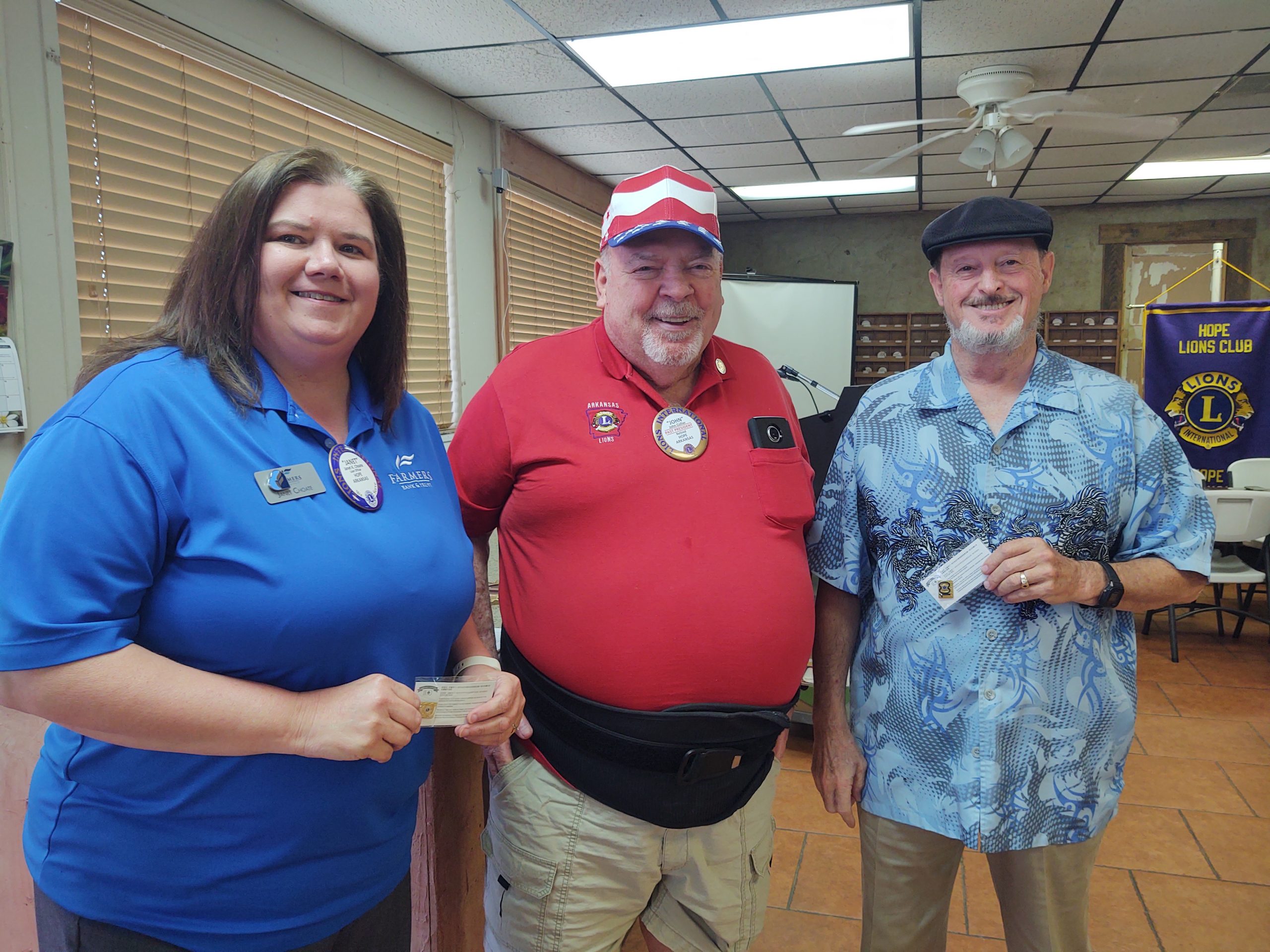 Janet Choate and Dave Phillips received Centennial Diamond Awards Monday at the Hope Lions Club. Both Choate and Phillips recruited new members who have been active in the club for three years. Making the presentation was Lion John Collier.