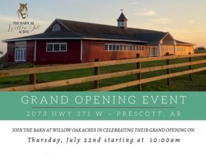 Featured Nevada County News News Grand opening set for The Barn at Willow Acres submitted July 6, 2021 PRESCOTT – Grand opening ceremonies for The Barn at Willow Acres will be held at 10 a.m. July 22. The Barn at Willow Acres is located at 2073 Hwy. 371, in Prescott.