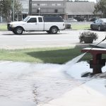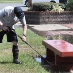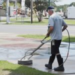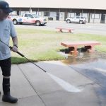 He started around 11 a.m. Friday and said it would take about five hours in total to finish the job. The job includes cleaning the concrete, parking lot and around the planters.