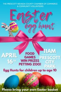 PRESCOTT – April 16 is the date for this year’s Annual Prescott-Nevada County Chamber of Commerce Easter Egg Hunt.