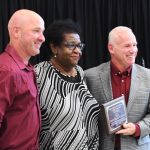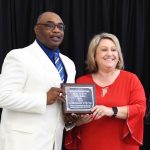 Jay Turley presented Teacher of the Year to Pearl Bailey, saying she’s been teaching for 44 years and gives good advice.