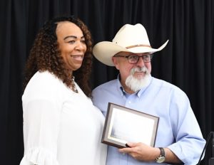 The Business Leadership award went to Jackie and Velvet Lewis, owners of Prescott Raceway. The couple bought the business in 2009, though Jackie said it was a hard decision as he wanted to keep racing. Normally, the track has a few hundred fans during race days, but when the Street Outlaw team from television showed up last year thousands came out to enjoy a day at the races.
