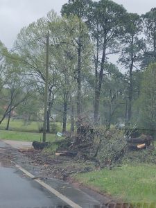 It appears Hempstead County dodged much in the way of serious storm damage on Tuesday night.  Hempstead County Sheriff James Singleton said Wednesday morning most of the damage appeared to be restricted to trees and power lines down.  An old oak tree on east Third in Hope was downed and it apparently bent a street light.  Big Mac’s Bar B Que shared photos with us of trees and power lines downed on Hempstead 183.  A tornado warning was issued about 11pm for Hempstead and Nevada County with rotation spotted in clouds headed towards Prescott.  Both Hempstead and Nevada County still had power outages as of Wednesday morning but no report of injuries.  Those in the area need to stay close to a source of weather news today as there could be more bad weather to come.