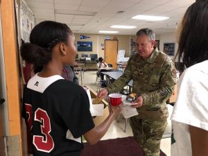 Despite nasty weather, like the Postal Service, the Hope High School Student Council delivered during Teacher Appreciation Week. Student Council Representatives Tyasia Eason, Brency Cabriales, Angelina Soto, and Kennedy Phillips made the rounds of classrooms throughout the HHS campus to deliver lunch to teachers under the direction of Student Council Sponsor Sheila Hopson. The menu included chicken sandwiches from Chik Filet, chips, drink and cookie. – Ken McLemore/Hope Public Schools