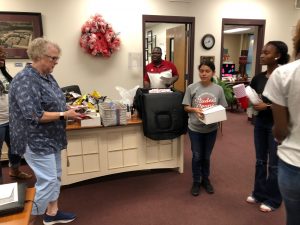 Despite nasty weather, like the Postal Service, the Hope High School Student Council delivered during Teacher Appreciation Week. Student Council Representatives Tyasia Eason, Brency Cabriales, Angelina Soto, and Kennedy Phillips made the rounds of classrooms throughout the HHS campus to deliver lunch to teachers under the direction of Student Council Sponsor Sheila Hopson. The menu included chicken sandwiches from Chik Filet, chips, drink and cookie. – Ken McLemore/Hope Public Schools