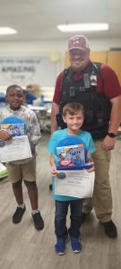 Hope Public Schools SRO Corporal Dean gives out certificates and goodies to students who are caught in the act doing amazing things. He “caught” Riddic Carter and Earl Waters picking up trash during recess. The boys were presented with Corporal Dean’s Good Character Awards – the first of the school year!!