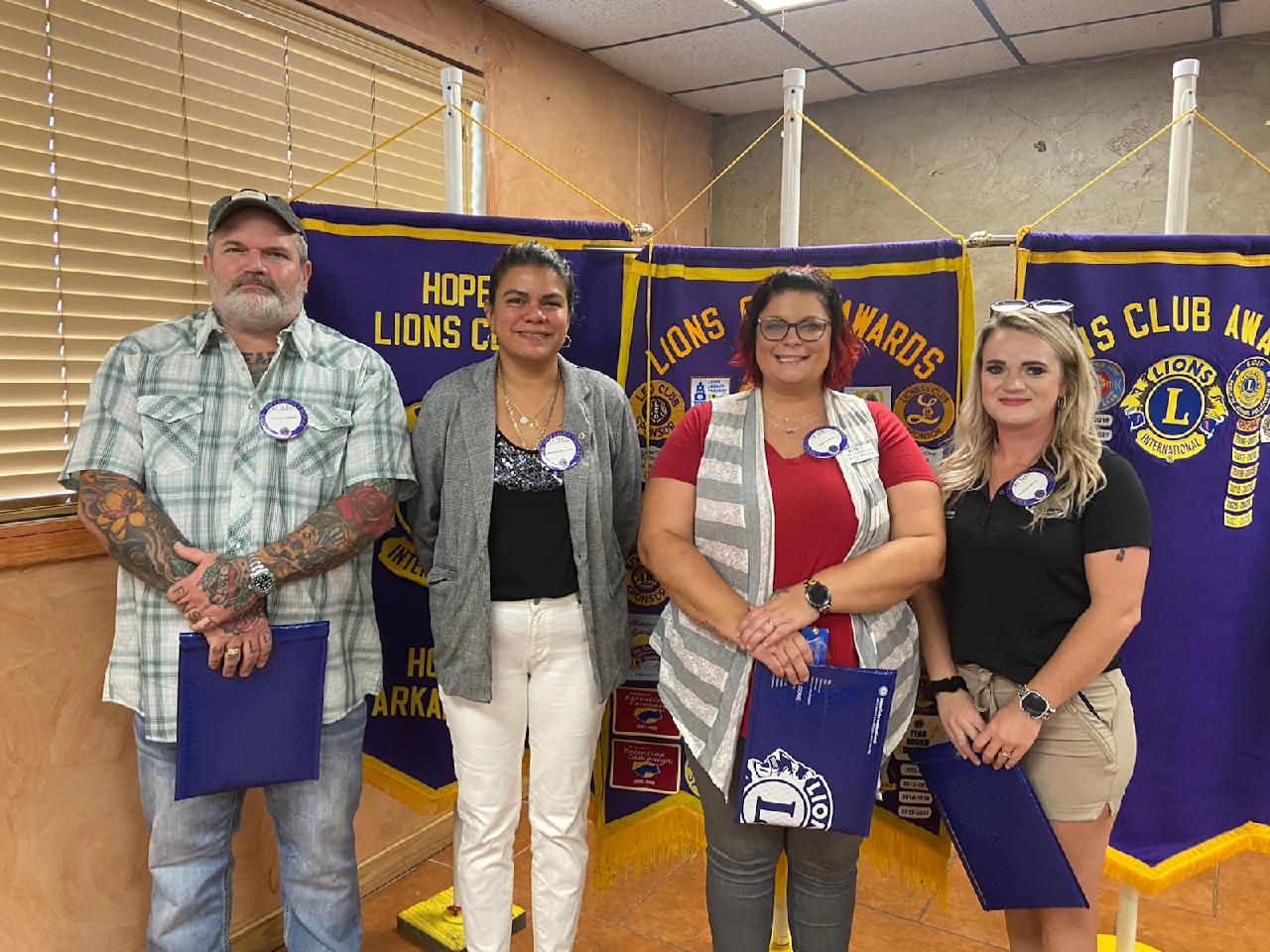 The Hope Lions Club inducted 4 new members on Monday. They included Doug Ozment, Margaret Maclaughlin, Christy Burns, and Melanie Griffith.