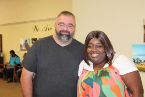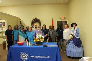 There was a terrific turnout recently at the Hope/Hempstead Community Coffee hosted by ROC Adult Components. First there was a great group from ROC who came and set up the event held at the Chamber Office at Main and Second in downtown Hope. Also present was a special visit by “Martha Washington”, who represents the area DAR organization, dressed in a handmade costume while answering many questions and posing for photos. There was a turnout by several members of theROC King Pins and Strike Kings Special Olympics bowling team as they wore their bowling jerseys to the affair and visited with many business members from our community. Several tables were arranged perfectly with savory home-cooked breakfast/brunch treats. The famous ROC homemade punch and coffee, plus a colorful centerpiece donated by Hope Floral greeted visitors next, with fruit and veggies and sweets rounding out the fare. Overall, it was a great morning of networking with our fine neighbors in the community and an opportunity for everyone to fellowship around some delicious treats. Special thanks to Chamber of Commerce Director Christy Burns and her very capable assistant, Trevor, for their graciousness and help in making the event possible.