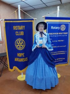 If you saw Martha Washington around town, she was busy announcing that Constitution Week is September 17-23 each year.  On Tuesday she attended the Hope City Board (disguised as a regular person) and received a Proclamation for “Constitution Week”. Dressed as Martha, she attended the Chamber Coffee on Wednesday morning hosted by Rainbow of Challenges and handed out Constitutions to each visitor.  At noon on Thursday, she attended Rotary and played Constitution Trivia with their members.  Thursday night, she attended the Corum Court and received a Proclamation for “Constitution Week” and handed out twelve Constitutions to the J.P.  A  Constitution display at Hempstead County Library with free Constitutions was available from John Cain Chapter of DAR.
