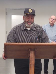 Presentations were made by Secretary of the Arkansas Department of Veterans Affairs Co. Nate Todd, Gina Chandler, Assistant Director of Veterans Services, District Veterans Service Officer Sue Harper, and Chief of V.A. Services Micheal Dobbs. Herbert Ross of the American Legion Post #427 also spoke. Josh St. Clair, Veterans Service Officer from Nevada County was also on hand. They joined County Judge Jerry Crane who emceed the event and Sheriff James Singleton who set up the courthouse for the event.