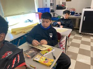 HOPE, ARK – At Beryl Henry Elementary School, Mrs. Smelley’s 6th grade Social Studies class has been studying Egypt. Mary Overton from the SW Arts Council has been helping the students with Egyptian Death Mask Projects with the use of oil pastels. Photos provided by Christi Sullivan.