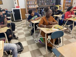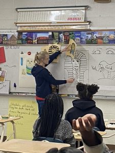 HOPE, ARK – At Beryl Henry Elementary School, Mrs. Smelley’s 6th grade Social Studies class has been studying Egypt. Mary Overton from the SW Arts Council has been helping the students with Egyptian Death Mask Projects with the use of oil pastels. Photos provided by Christi Sullivan.
