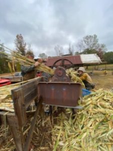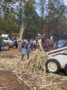 Years ago, there were certain chores on the farm that happened in the fall such as hog killing and syrup making. Well we don’t know who all’s killing hogs but over at the Wyndell and Nancy Bailey Farm near Willisville, there was some syrup making going on this past weekend. The Baileys used sorghum cane and put up quite a few jars of finished product. T.J. Fackler and Harleigh Williams are shown stirring the cooking syrup. We bet the smell of the cooking syrup was wonderful!