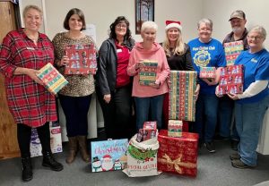The Hope Civitan Club provided Christmas gifts for the children of two families being served by the local office of Domestic Violence Prevention. Members of the club met to present the gifts to DVP on December 12. Pictured are (from left) Betty Valdez of DVP, Civitans Rachel Parson, Terra Newsom, Linda Blackman, DVP local Director Mandy Turner, Civitans Eva Morehead, Dave Phillips, and Civitan President Mona Still.