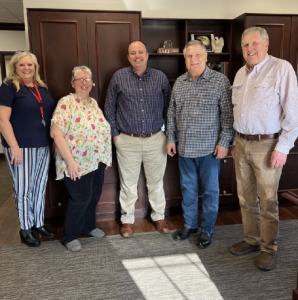 Hempstead County closed Tuesday on purchasing the former Farm Bureau Building on East Third/US 67. The county acquired the building for for $150,000. Present for the closing was Hempstead County Clerk Karen Smith, Pat Harris, closing agent for Hempstead County Abstract, Reed Camp, Farm Bureau Manager, Hempstead County Judge Jerry Crane, and Farm Bureau Secretary Randy Hare. Hempstead County Treasurer Judy Lee Flowers was also on hand to sign the county check. Plans are for the Hempstead County Cooperative Extension Service office to move from the old courthouse to the Farm Bureau building.