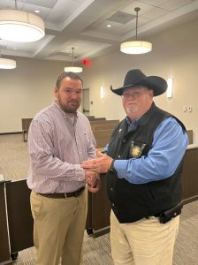 Luke Everett of Blevins recently completed the Reserve Deputy course. Luke is presented with his badge and ID by Hempstead County Sheriff Singleton after being sworn in by Circuit Judge Joe Short. HCSO