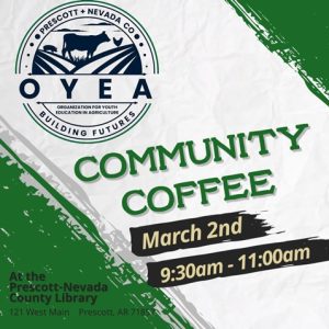 PRESCOTT – The OYEA group will be hosting a Chamber of Commerce Community Coffee tomorrow, March 2, at the Prescott-Nevada County Library from 9:30am-11am.