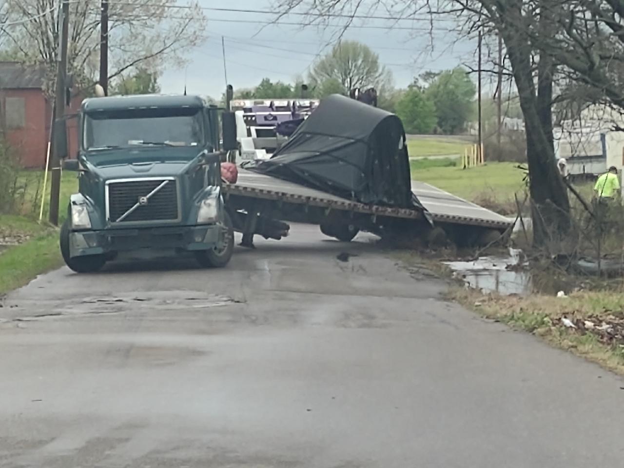 North Main was blocked for a time Friday afternoon near the Gaslight Club due to a tractor-trailer running in to a ditch.