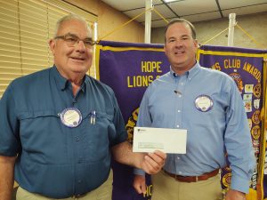 Hope Lions Shawn McClish of Hope Auto presented the club with a $1,000 check Monday in appreciation of the club’s recent fish fry for Hope Auto’s 100th anniversary celebration. The club was happy to help the venerable Hope dealership and was delighted to receive the unexpected check. Hope Auto has not only served the area for over 100 years but the dealership has long been a big supporter of the Hope Lions Club.