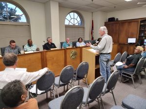 After the Departmental report, the meeting moved on to the consideration of the condemnation resolution. Building Official Carl Conley talked about the various buildings and what the issues were. Pictures were also shown about the buildings. Issues the buildings had included a foundation issues, lack of electric or gas meters, walls and windows needing repair, roof leaks, lack of plumbing, and unsecured buildings. One building was said to have been sold to a church but there was no evidence of the sale.