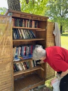 Spring cleaning time —Bobbie Jean Smith spent some time this week cleaning up the Sutton (Nevada County, Arkansas) Book Box.Started in 2015 by Bobbie and her husband George (former editor of the Hope Star and Texarkana Gazette), the rural library usually has about 200 books for area residents to pick up or trade; book donations are also accepted.