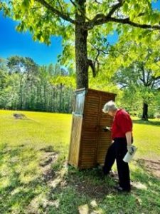 Spring cleaning time —Bobbie Jean Smith spent some time this week cleaning up the Sutton (Nevada County, Arkansas) Book Box.Started in 2015 by Bobbie and her husband George (former editor of the Hope Star and Texarkana Gazette), the rural library usually has about 200 books for area residents to pick up or trade; book donations are also accepted.